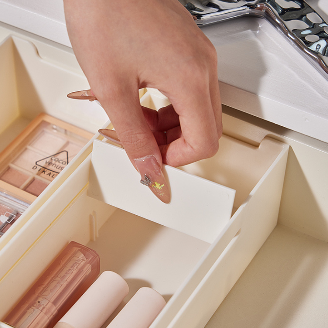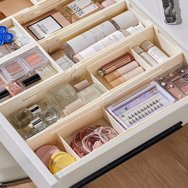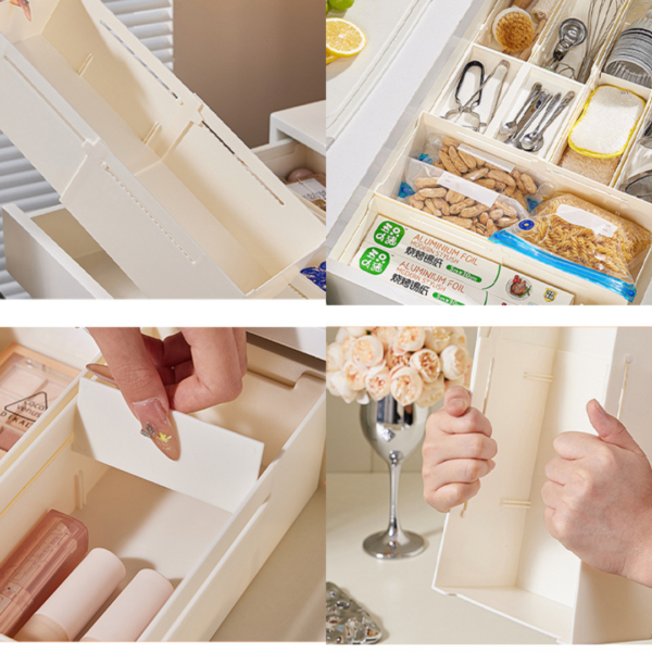 Caja retráctil con divisiones, ideal para organizar espacios como closet, alacena, baño, lavandería o repisas. Su diseño ajustable permite adaptarla según el espacio que necesites, mientras que sus divisiones ayudan a separar productos pequeños, accesorios, ropa, snacks o artículos del hogar de forma más ordenada y fácil de encontrar.