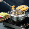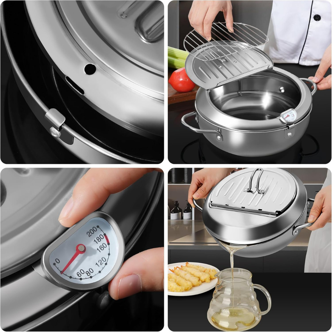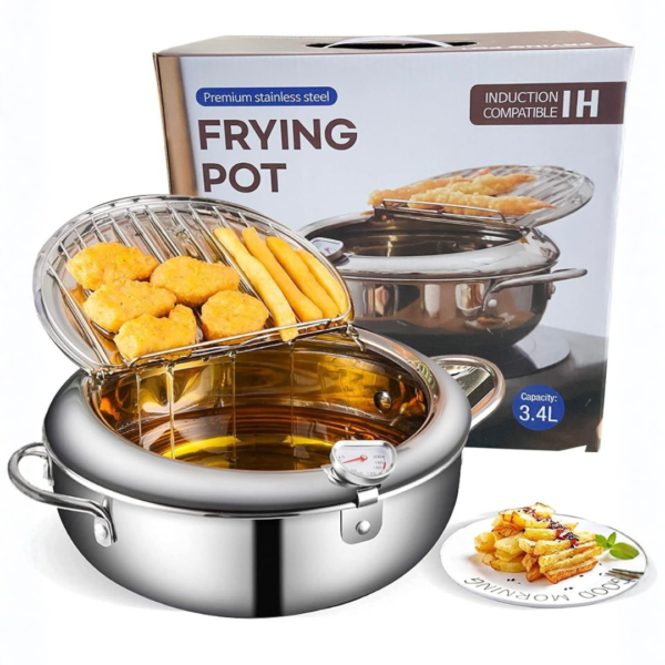 Olla freidora con termómetro, ideal para preparar frituras de forma más práctica y con mejor control de temperatura. Su diseño profundo de 3.4 litros permite freír distintos alimentos con mayor comodidad, mientras que su termómetro incorporado te ayuda a monitorear el calor del aceite para obtener mejores resultados. Además, incluye tapadera escurridora para apoyar los alimentos y dejar caer el exceso de aceite.