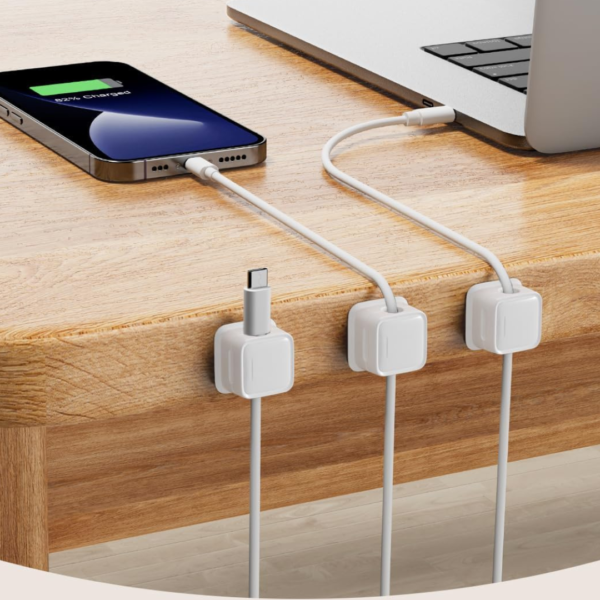 Set de 12 porta cables ideal para mantener tus cables ordenados y evitar que se enreden o se caigan detrás del escritorio, mesa de noche o área de trabajo. Su diseño con cierre magnético permite colocar y retirar los cables fácilmente, mientras que su adhesivo ayuda a fijarlos en distintas superficies lisas.