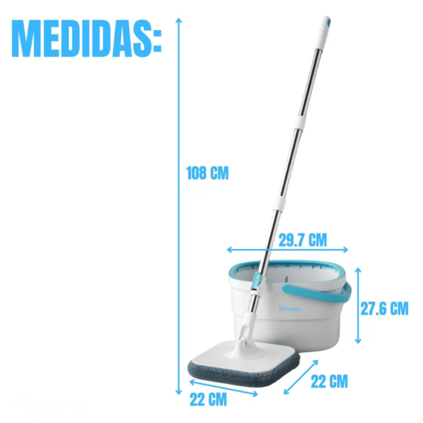 Trapeador giratorio 360 ideal para una limpieza más práctica e higiénica en casa. Su sistema separa el agua limpia de la sucia, ayudando a trapear con mayor eficiencia, mientras que sus cerdas internas limpian la mopa al girar para retirar el exceso de suciedad antes de volver a usarla.